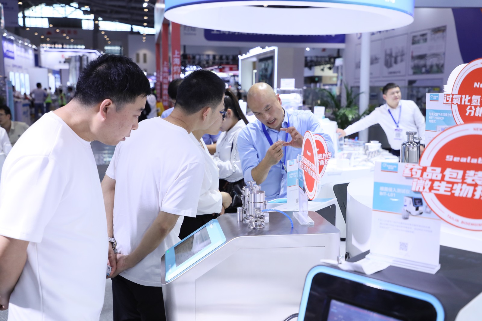 此外,許多觀眾還對無菌藥品研發生產和質量控制解決方案表現出濃厚興趣,現場技術人員通過舉例驗證等方式為大家答疑解惑。展臺上的產品吸引了大量參觀者,許多觀眾紛紛上手打開機組,觀看機組的外觀和內部結構,進一步加深對產品的理解和認可。